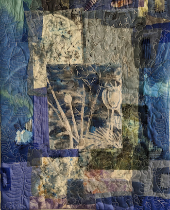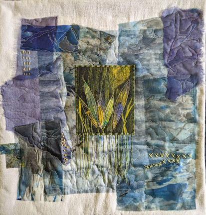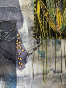 Above you see a detail shot and the full wall quilt titled “Grass Roots”.