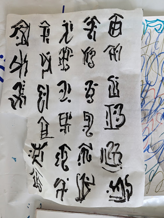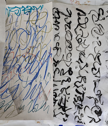 I am currently taking an online class with Lorna Crane, an Australian artist through Fibre Arts Take Two. We are making marks with handmade brushes, constructing and deconstructing and creating personal symbols with asemic writings. We are making books, scrolls and vessels in this 8 week course.