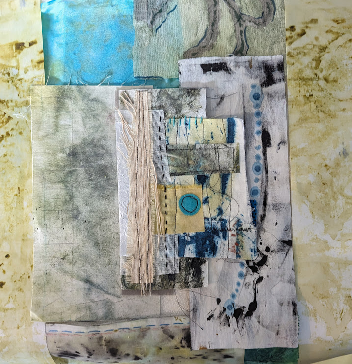 Took a wonderful workshop with Valerie White this last weekend. So many fun techniques from flour paste resist, to deconstruction and stenciling with stabilizer and acrylic paint.