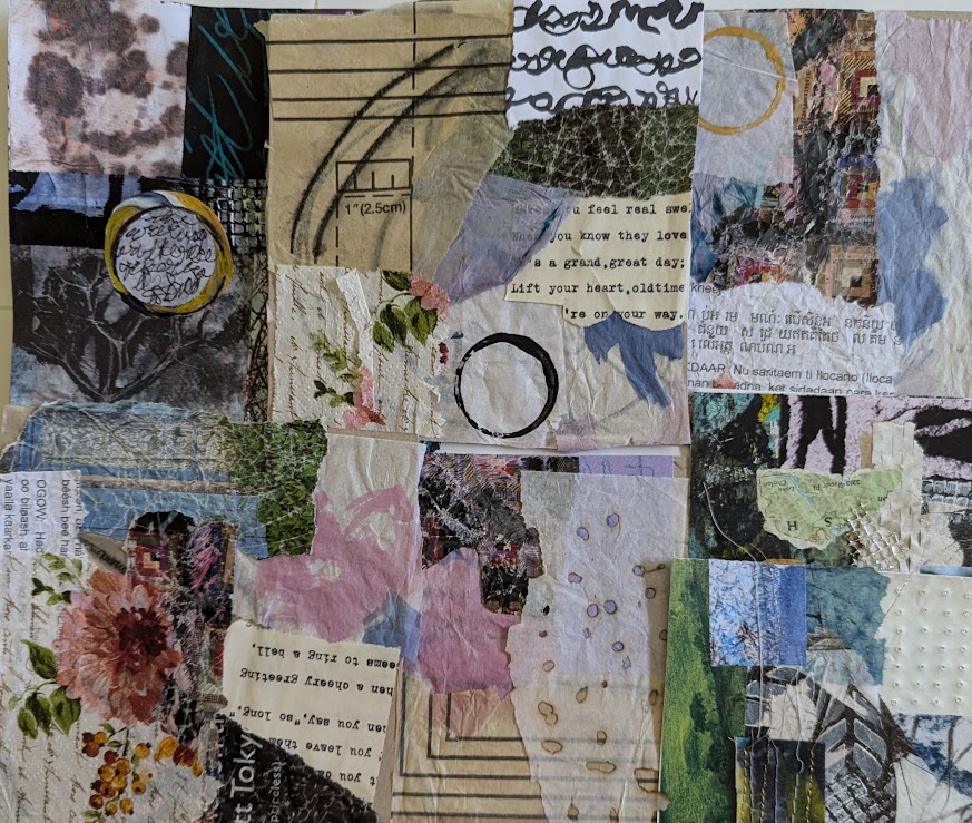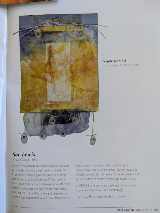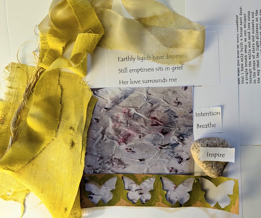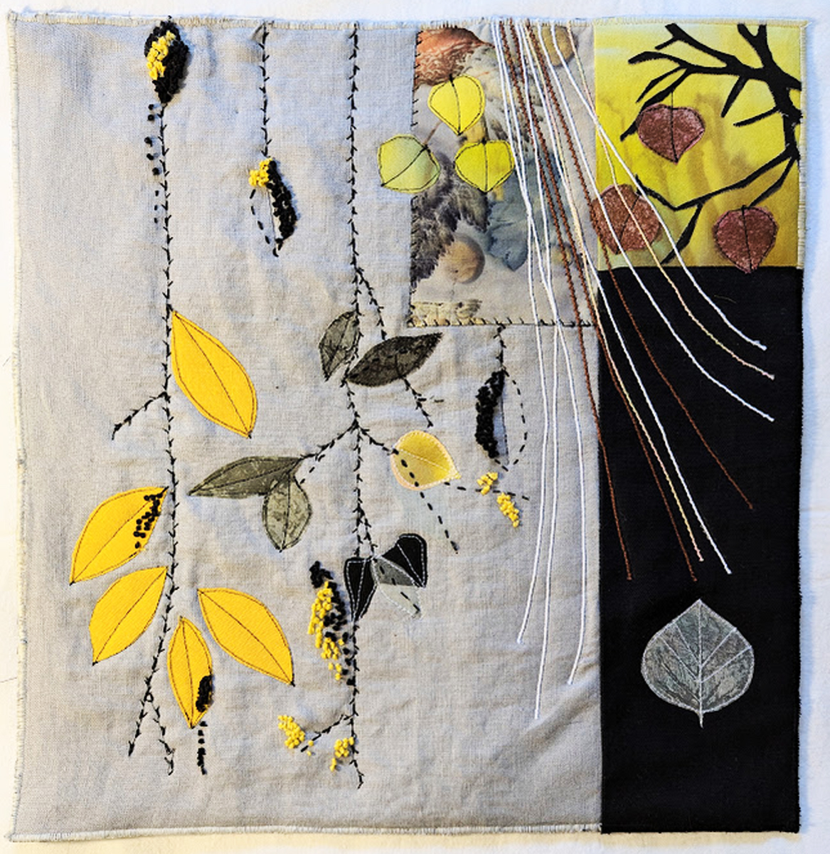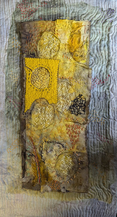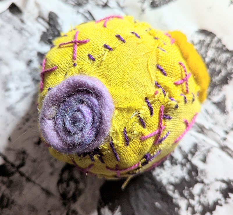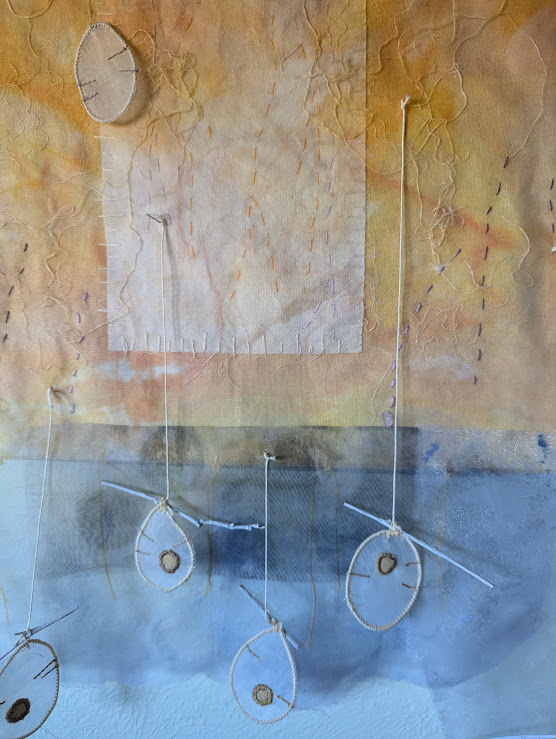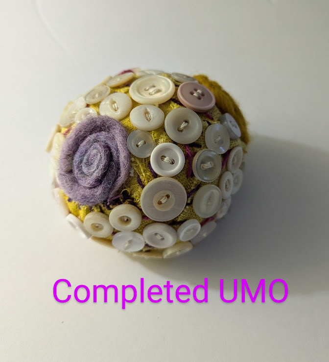 To see examples search IG or Facebook for #unidentifiedmeaningfullobject. I have used dyed linen, embedded paper, roving, stitches with perle cotton, vintage thread and vintage buttons.